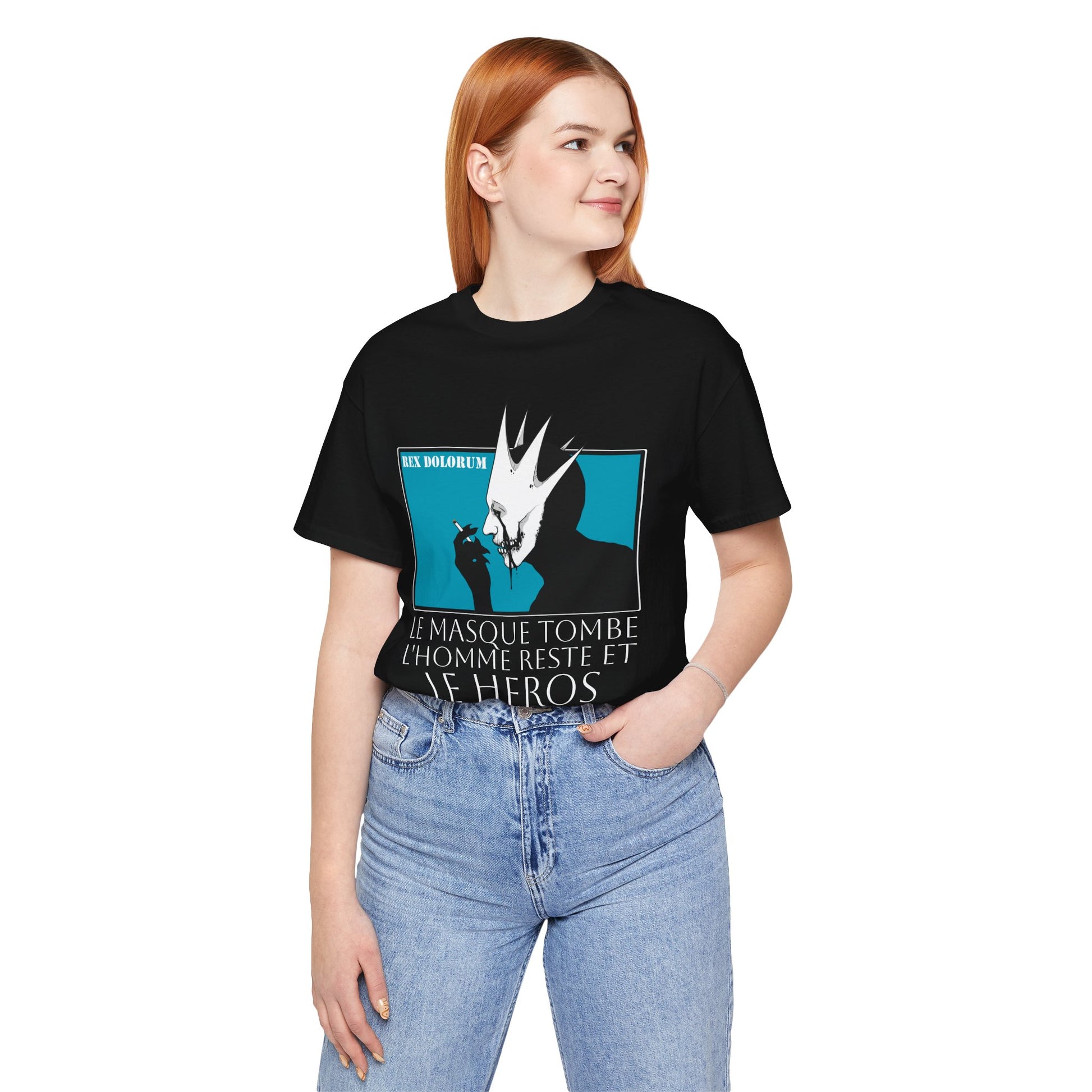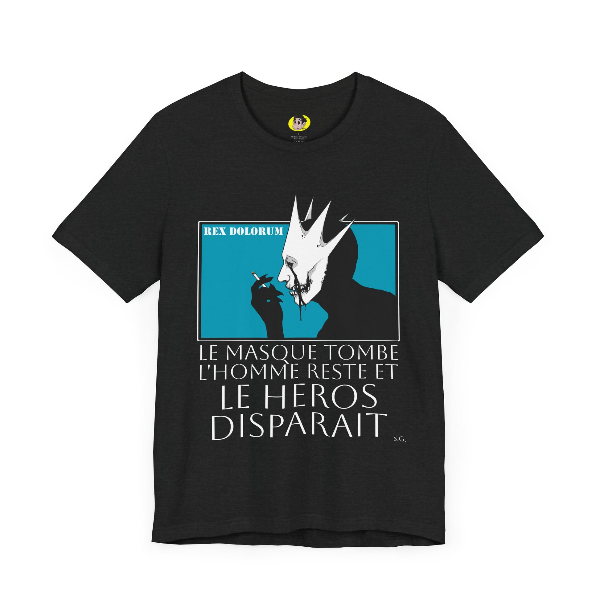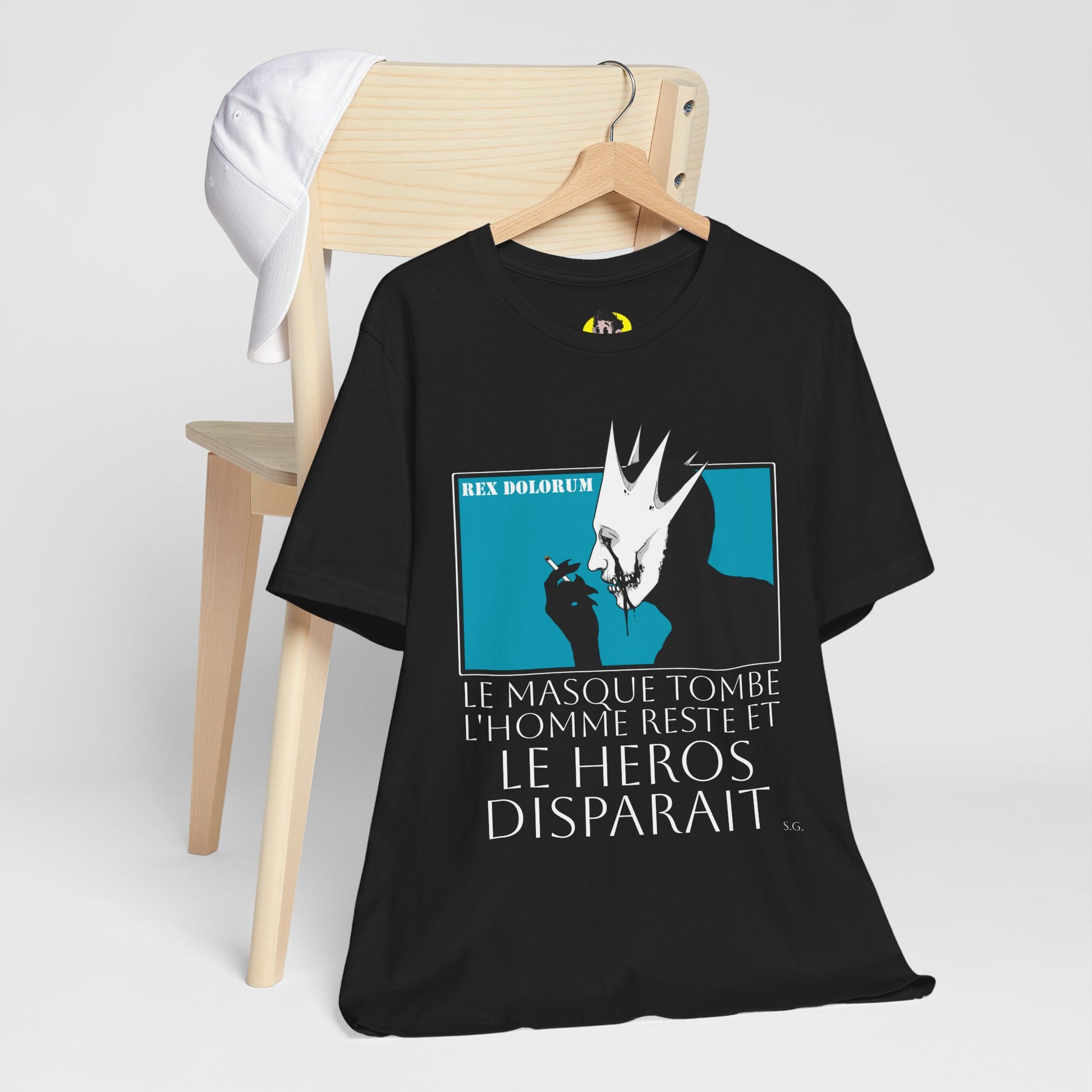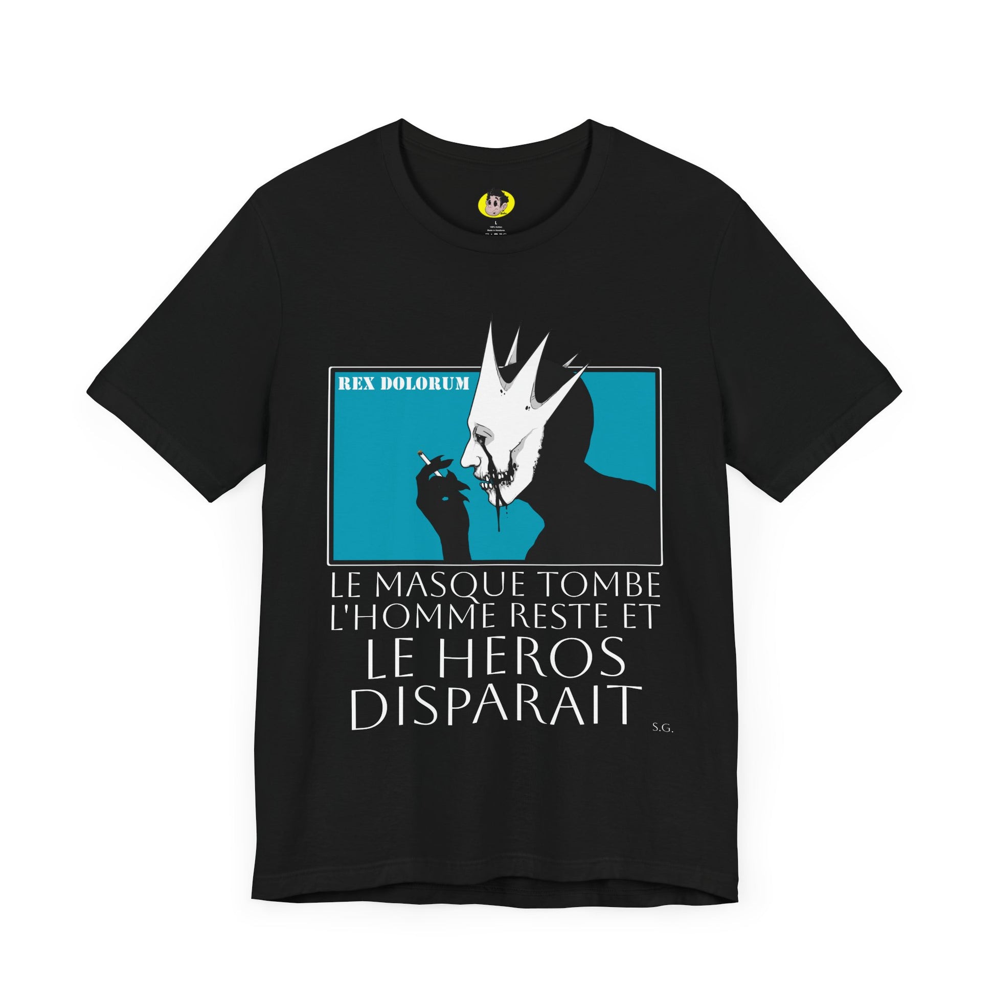A quiet rebellion. French cinema tribute with Mellitus in profile, the mask dangling like regret.